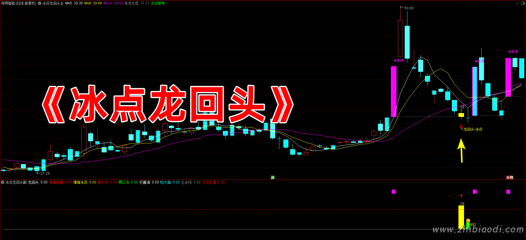 - 【优选指标】通达信【2026冰点龙回头】主图/副图/选股指标,捕捉强势低吸买点,无未来函数,指标源码,手机电脑通用,冰点龙回头信号出现当日,可在分时企稳位置低吸,或尾盘确认信号成立后介入,结合市场情绪与板块强度控制仓位,且信号选择上尽量选择未出现大涨或回调期间缩量的,回调期间反复大阴大阳长影线的出货概率大不建议参与。