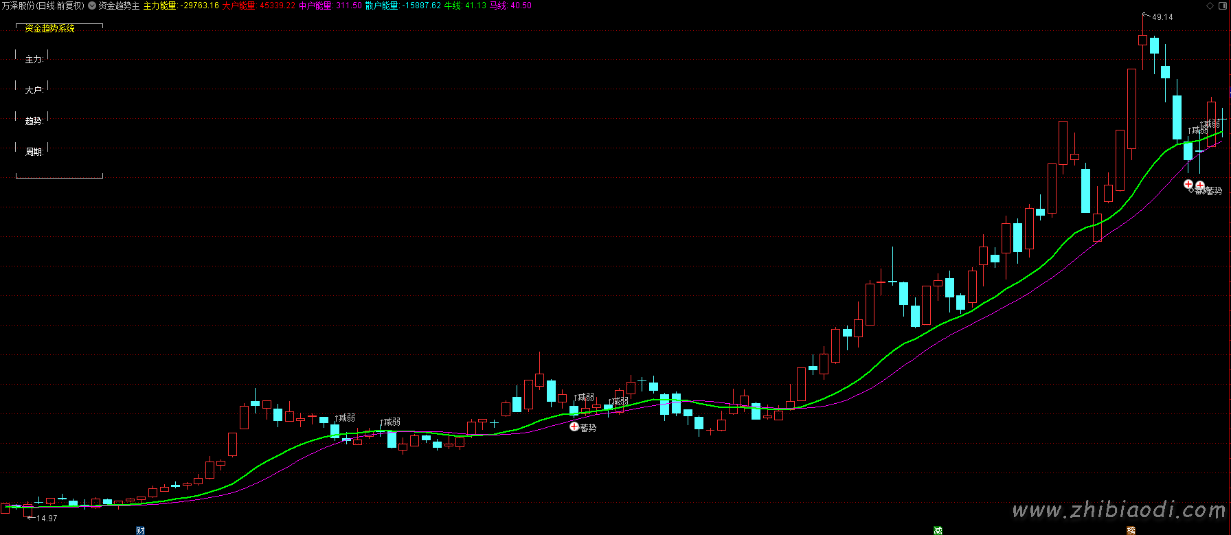 - 【众筹指标-2026第21期】通达信【资金趋势主升】主图/选股指标,四维分析实时监测大户量能,无未来函数,指标源码,手机电脑通用,当主力、大户能量同步维持正向区间,且主力资金连续递增,代表场内大资金长期布局、筹码高度稳固;散户主导的短期杂乱波动,系统会自动甄别过滤,从源头避开弱势行情。